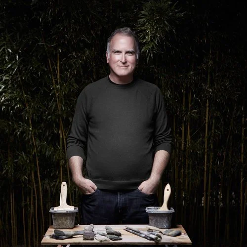 When we were asked to do his portraits, I wanted to create photos that echoed both his work and the concept of exploration. I really liked his philosophy on time and circumstance that allows for something beautiful to be created. The highlight of the shoot for me as a photographer is the picture above, although I think Paul may have felt it was a bit much. For the effect, we used a water-based white paint. I had Paul experiment with the shape and forms we could create by flinging it from two of his larger paint brushes. We used the fastest shutter speed we could to freeze the action. The setting for the shot was Paul's bamboo garden. You can't tell, but the back door to his studio is actually just outside the photograph. Thanks for reading and I hope you love these pictures as much as we loved creating them! Check out a few more portraits and work slides of Paul's work from the shoot in the gallery below. View more commercial portrait photography from our studio here.