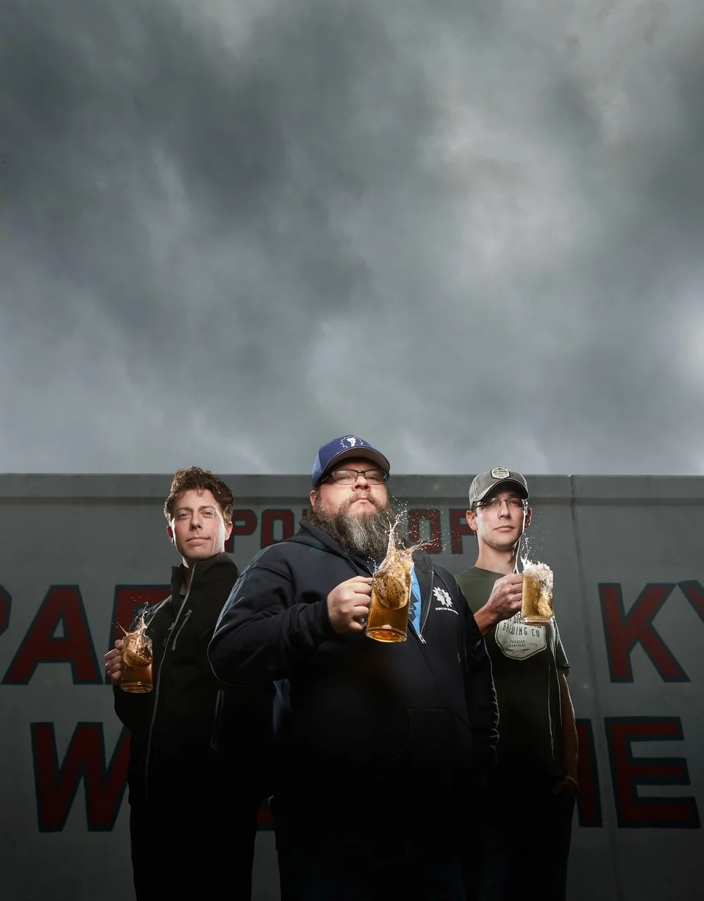 Cover photography for the April/ May 2016 issue of Score Magazine. Pictured from left to right is Daniel Sene with PSO, Todd Blume of Paducah Beer Werks, and Edward Musselman of Dry Ground Brewing.